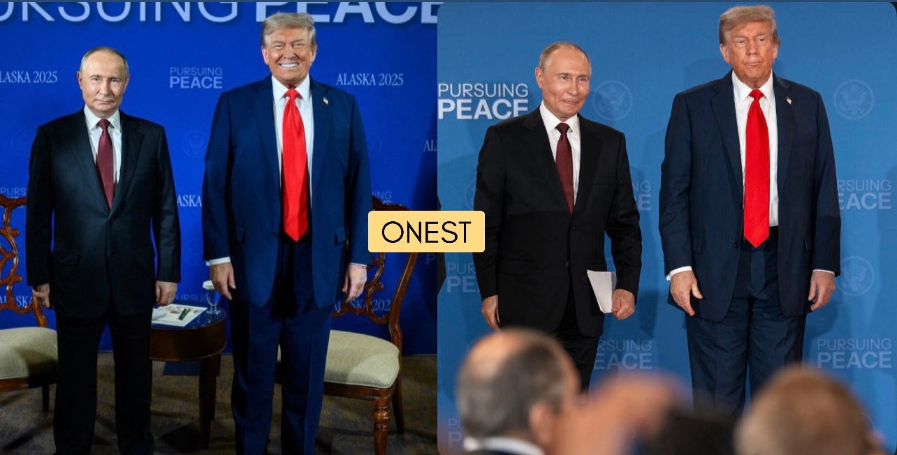Trump, visibly eager, clapped as Putin approached. The two shook hands, exchanged laughs, and posed together on the Alaska 2025 stepper.