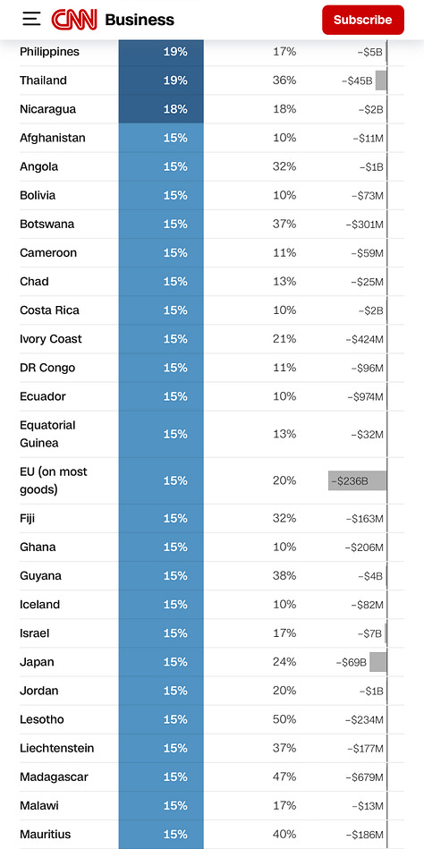 New Rates: Bolivia and Nigeria face 15%; Brazil tops the list with 50%. (See full global breakdown below)