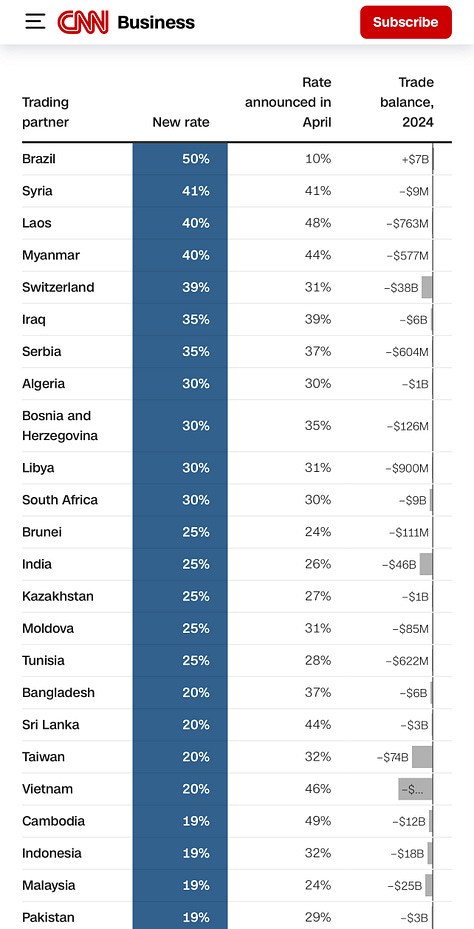 On Wednesday, Trump announced a 25% tariff on India (effective Thursday) and warned that more penalties are coming for countries purchasing Russian energy.